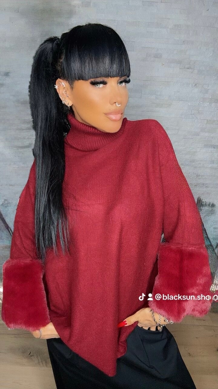 Taglia unica - oversize - manica campana in eco pelliccia - dolcevita - stile impero