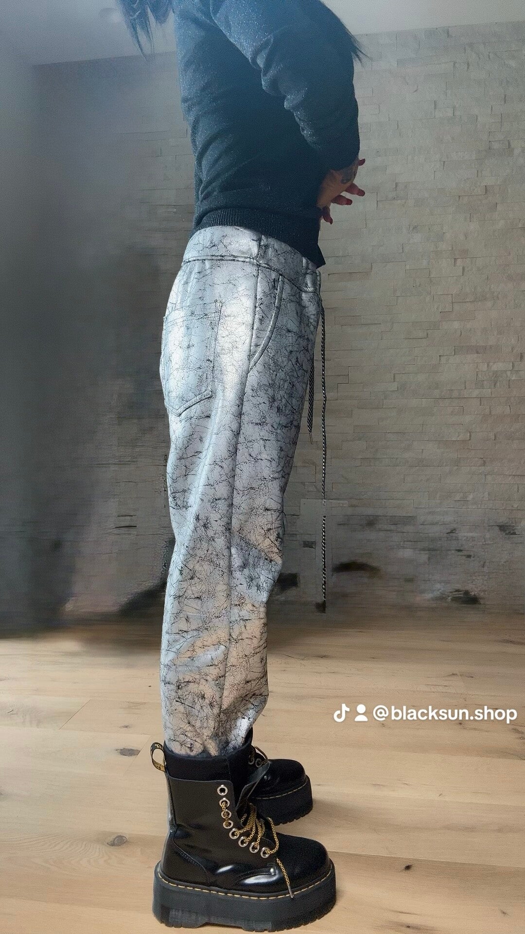 PANTALONE ECOPELLE argento marmo