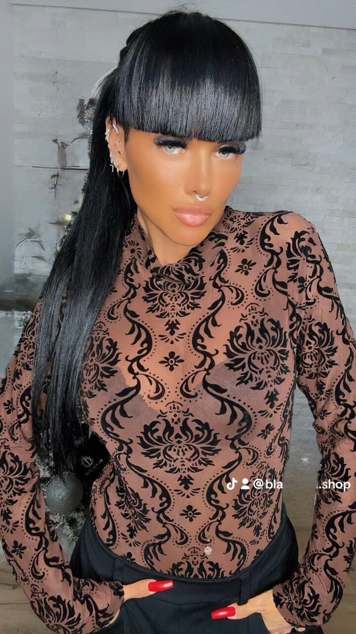 Taglia unica - trasparenza nero - disegno ciniglia rilievo - chiusura gancetti - elasticizzato