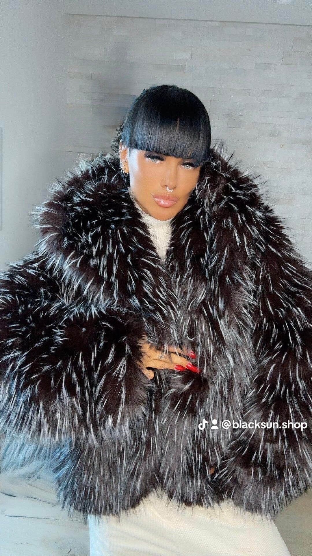 Taglia unica - gancetti chiusura - doppia tasca laterale- interno rivestito - ciuffetti bianchi
