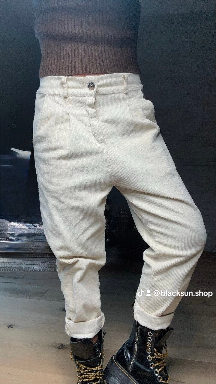 PANTALONE VELLUTINO SLIM panna